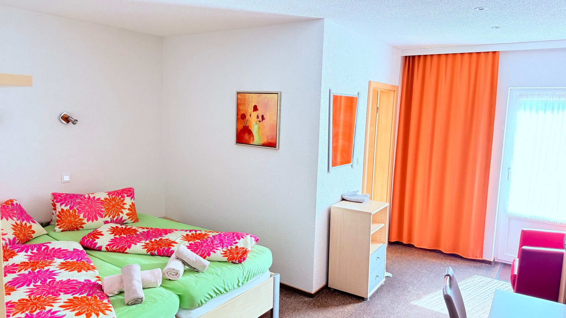 Fühlen Sie sich wohl in unseren ebenerdigen Doppelzimmern mit Dusche/WC, TV, W-Lan, Fön, Terrasse bei einer idylischen Atmosphäre als Kraftoase mitten in der Naturlandschaft am Waldrand mit großem Teich.